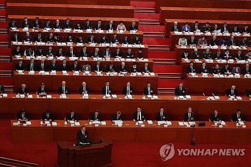 전인대 연례회의서 업무보고 하는 리창 총리 |