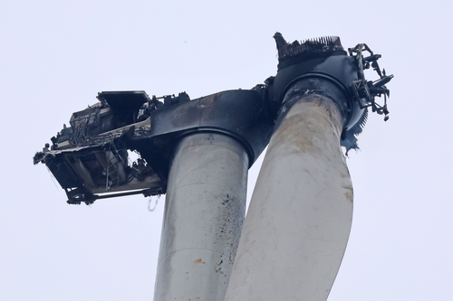 그러나 지상 80m 높이에 있는 발전기와 블레이드(날개) 1개에는 잔불이 있다.