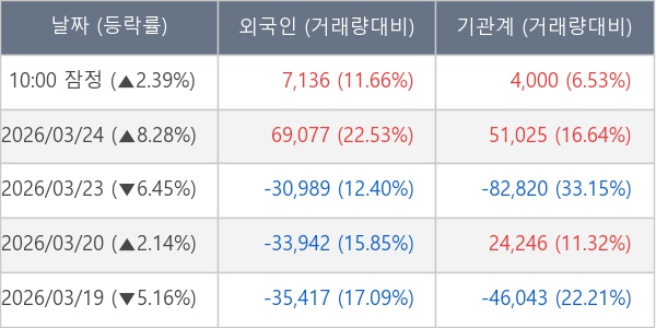 ※ 사모펀드 등 일부 기관의 순매매량은 표시되지 않음