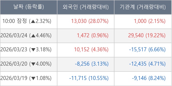 [표] 외국인ㆍ기관 순매매량 (단위 주)