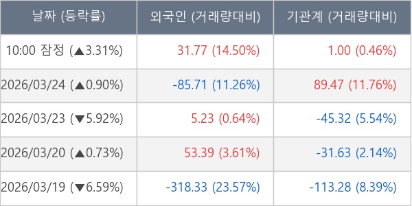 [표] 주요 기관별 순매매량 (단위 만주)
