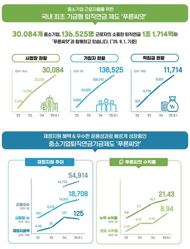 푸른씨앗은 지난 2022년 9월 도입 이후 가입자 약 16만명, 적립금 약 1조5000억원 규모로 성장했다. 연도별 수익률은 2023년 6.97%, 2024년 6.52%, 2025년 8.67%를 기록했다.