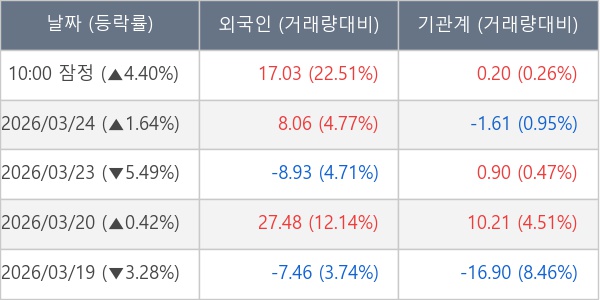 [표] 외국인ㆍ기관 순매매량 (단위 만주)