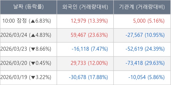 [표] 주요 기관별 순매매량 (단위 주)