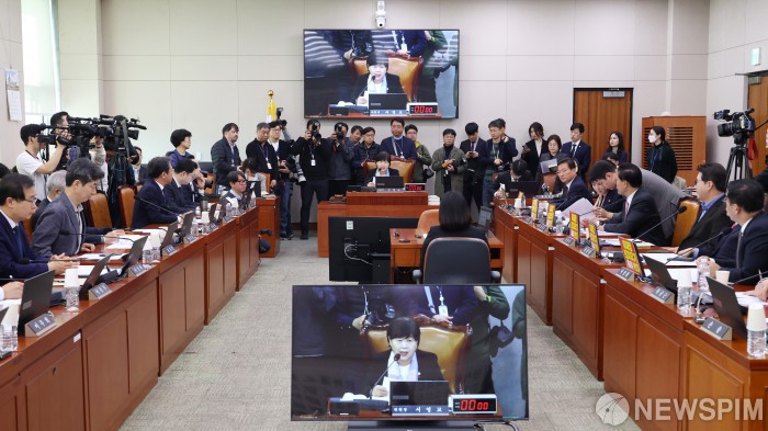 [서울=뉴스핌] 정일구 기자 = 25일 오전 서울 여의도 국회에서 열린 윤석열 정권 정치검찰 조작기소 의혹 사건 진상규명 국정조사특별위원회 제2차 전체회의에서 서영교 위원장이 발언하고 있다. 2026.03.25 mironj19@newspim.com