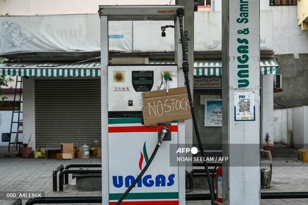 (인도=국제뉴스) 박원준 기자 = 25일(현지시간) 인도 하이데라바드의 한 주유소 펌프에 '재고 없음' 표시가 붙어 있다.