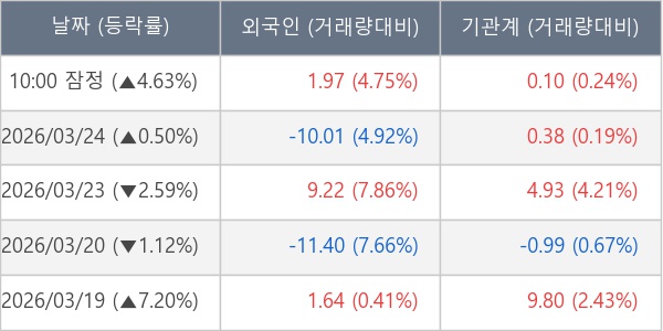 [표] 주요 기관별 순매매량 (단위 만주)