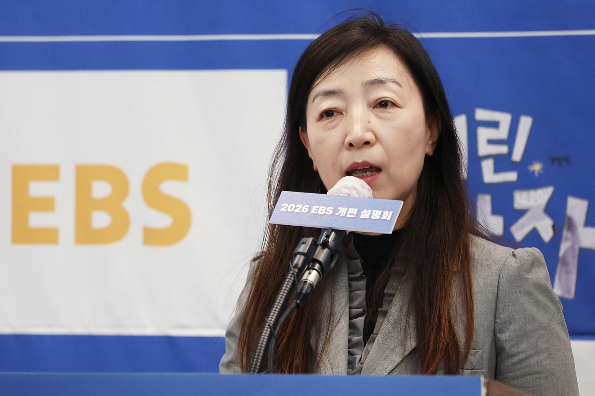 김유열 EBS 사장이 25일 서울 중구 프레스센터에서 열린 2026년 EBS 개편 설명회에서 인사말을 하고 있다. 연합뉴스 |