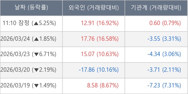 [표] 외국인ㆍ기관 순매매량 (단위 만주)