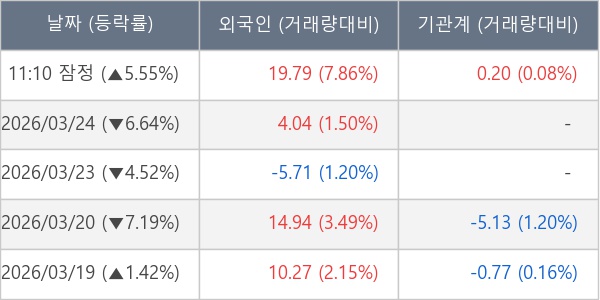 [표] 외국인ㆍ기관 순매매량 (단위 만주)