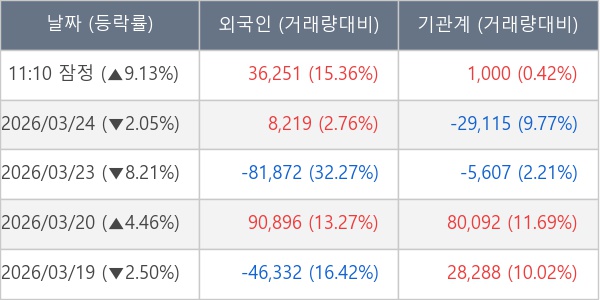 [표] 주요 기관별 순매매량 (단위 주)