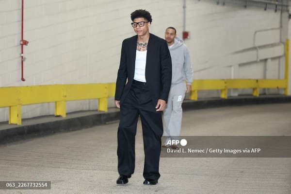 (미국=국제뉴스) 박근영 기자 = 24일(현지시간) 뉴올리언스 펠리컨스의 제레미아 피어스(등번호 0번)가 뉴욕 닉스와의 경기에 앞서 매디슨 스퀘어 가든 경기장에 도착하고 있다