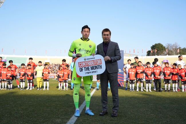 강원FC는 지난 22일 강릉하이원아레나에서 열린 하나은행 K리그1 2026 5라운드 제주SK FC와 홈경기에서 2월의 공헌상 시상식을 진행했다. 2024년부터 이어지고 있는 이달의 공헌상은 묵묵히 구단 발전에 공헌한 '언성 히어로'를 선수단과 프런트에서 1명씩 선정한다. 수상자에게는 트로피와 상품권을 선물한다.