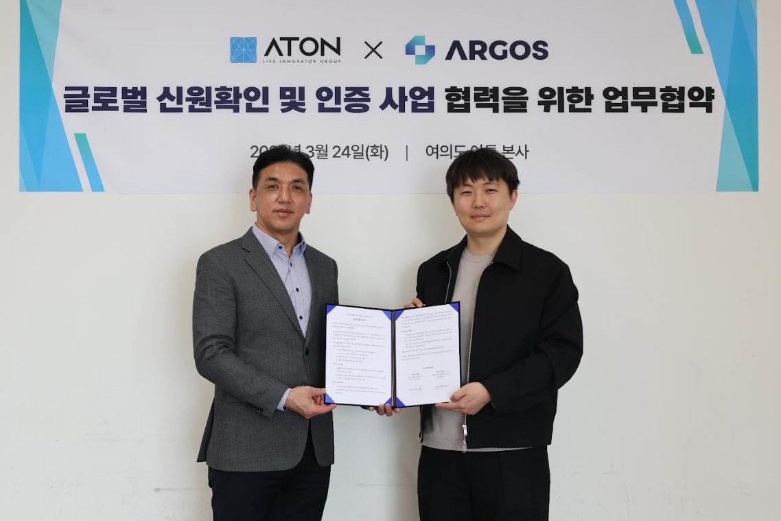 AI 기반 글로벌 신원인증 플랫폼 기업 ARGOS Identity(대표 이원규)가 인증·보안 전문기업 아톤과 글로벌 신원 확인 및 인증 사업 협력을 위한 업무협약(MOU)을 체결했다고 밝혔다.