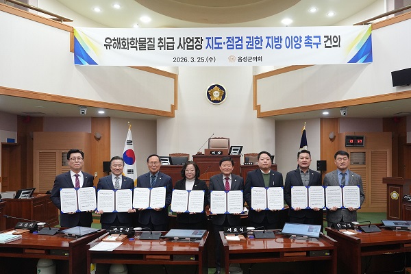 (음성=국제뉴스) 이재기 기자 = 충북 음성군의회(의장 김영호)는 3월 25일 제387회 임시회 제5차 본회의에서 '유해화학물질 취급 사업장 지도·점검 권한 지방 이양 촉구 건의문'을 채택하고, 군민의 생명과 안전을 지키기 위한 제도 개선을 정부와 국회에 촉구했다.