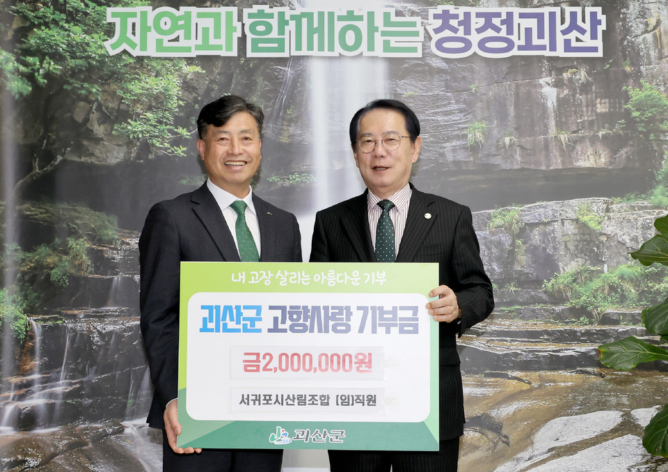 서귀포시산림조합이 괴산군에 고향사랑기부금 200만원을 기탁했다.