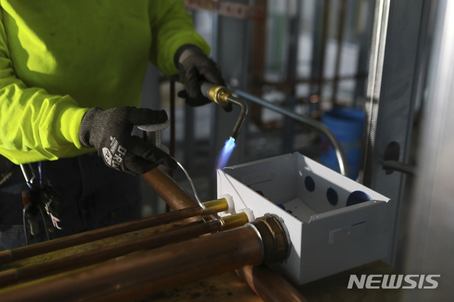 [시카고=AP/뉴시스] 미국 일리노이주 시카고 공사 현장에서 배관공이 파이프를 용접하는 작업을 하고 있다. 자료사진. 2026.03.25 |