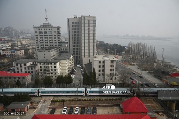 (중국=국제뉴스) 박원준 기자 = 25일(현지시간) 북한 수도 평양으로 향하는 여객 열차가 중국 북동부 랴오닝성 단둥을 지나 압록강을 건너 북한으로 진입하고 있다. 코로나19 사태로 6년 넘게 중단됐던 중국과 북한 간 여객철도 운행이 3월 12일 재개됐다.
