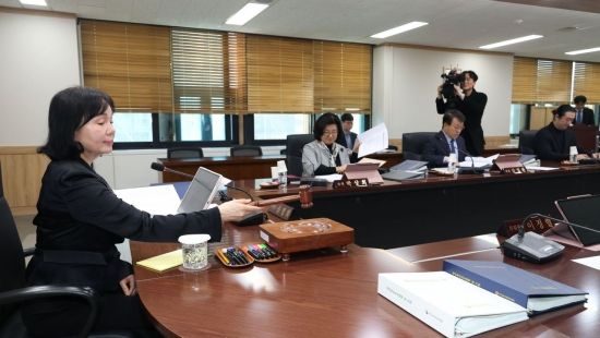 송경희 개인정보보호위원회 위원장이 25일 서울 종로구 정부서울청사에서 열린 제5회 전체회의에 참석해 회의 의사봉을 두드리 있다.