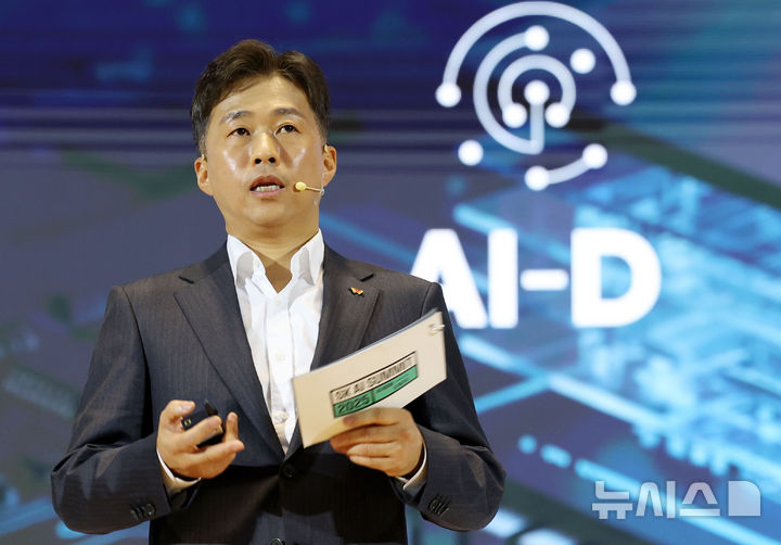 [서울=뉴시스] 홍효식 기자 = 곽노정 SK하이닉스 대표이사 사장이 3일 서울 강남구 코엑스에서 열린 'SK AI SUMMIT 2025'에서 AI시대, SK하이닉스가 그리는 새로운 비전과 기술을 주제로 기조연설하고 있다. 2025.11.03. yesphoto@newsis.com |