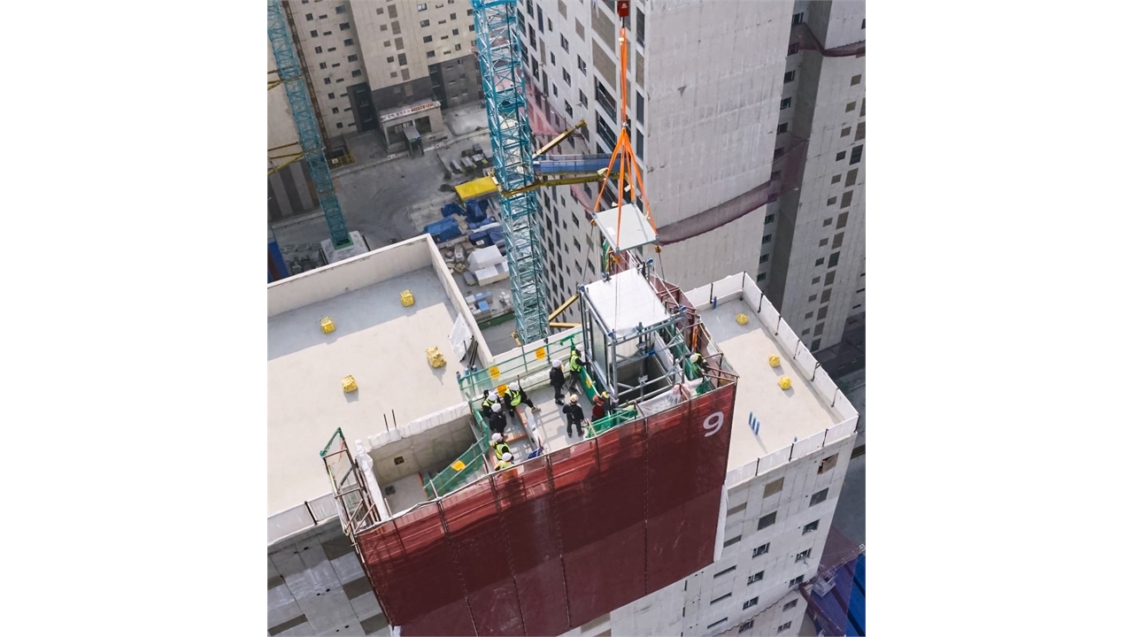 주요 구조물을 미리 제작해 현장에서 조립, 설치하는 모듈러 엘리베이터를 현대건설이 국내 처음 공동주택 현장에 적용했습니다.