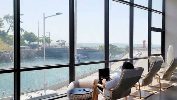 사진은 부산 오피스에서 업무 중 아름다운 경치로 힐링 중인 알서포트 직원 [사진=알서포트] *재판매 및 DB 금지 |