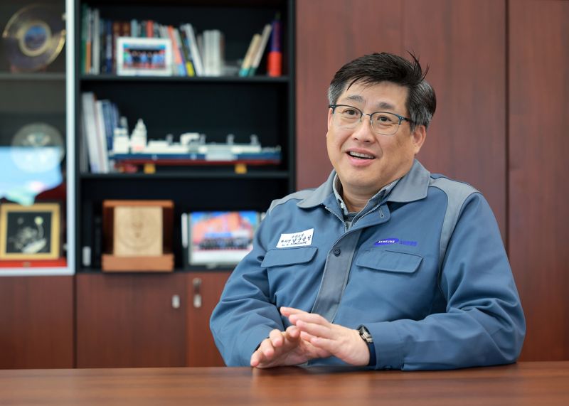 남궁금성 삼성중공업 조선소장 부사장이 25일 파이낸셜뉴스와 인터뷰에서 발언하고 있다. 삼성중공업 제공 |