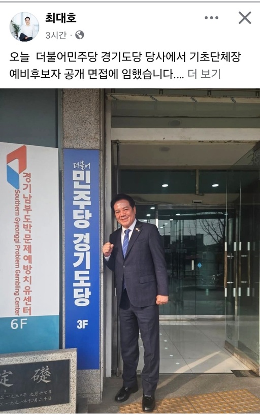 안양시 최대호 시장이 24일 더불어민주당 경기도당 당사에서 열린 기초단체장 예비후보자 공개 면접에 참여했다.