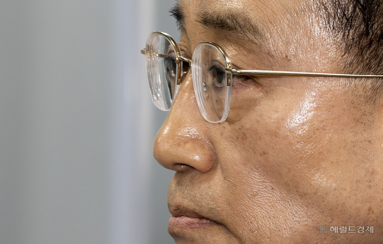 [헤럴드경제=임세준 기자] 내란 중요임무 종사 혐의로 기소된 추경호 국민의힘 의원이 25일 오후 서울 서초구 서울중앙지법에서 열린 1차 공판기일에 출석히고 있다.