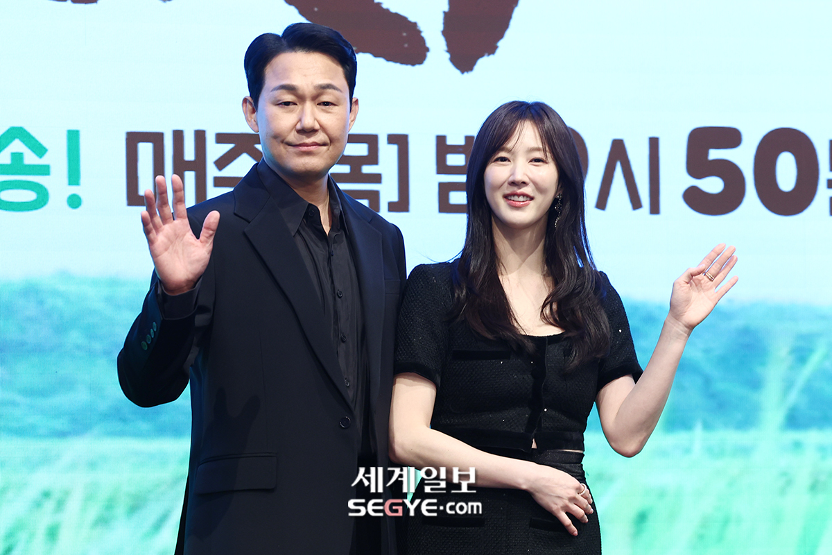 배우 박성웅(사진 왼쪽)과 이수경이 25일 서울 신도림 더 세인트 웨딩에서 열린 KBS 2TV 새 미니시리즈 ’심우면 연리리’의 제작발표회에 참석해 포즈를 취하고 있다.