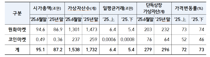2025년 하반기 가상자산 현황 [자료 = 금융위원회] |