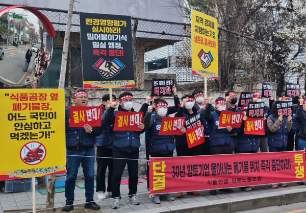 양사는 25일 청주시청 앞에서 '현도공단 생존권 사수 집회'를 열고, 식품 제조시설 인접 입지, 법적 절차 미준수, 근로자 건강권 침해 문제를 제기하며 공장 이전 가능성까지 검토해야 하는 중대한 사안이라고 밝혔다.