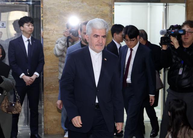 사이드 쿠제치 주한이란대사가 25일 국회에서 외교통일위원장인 국민의힘 김석기 의원과 면담하기 위해 외통위 소회의실로 향하고 있다.[사진=연합뉴스] |
