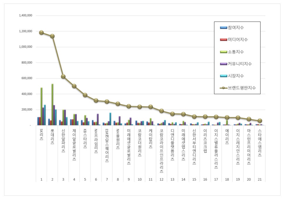 조사는 2월 25일부터 3월 25일까지 리츠 브랜드 21개를 대상으로 진행됐다. 분석에 활용된 빅데이터는 659만9,816건으로, 전월(677만9,578건) 대비 2.65% 감소했다. 평판지수는 참여·미디어·소통·커뮤니티·시장 지수를 종합해 산출했다.