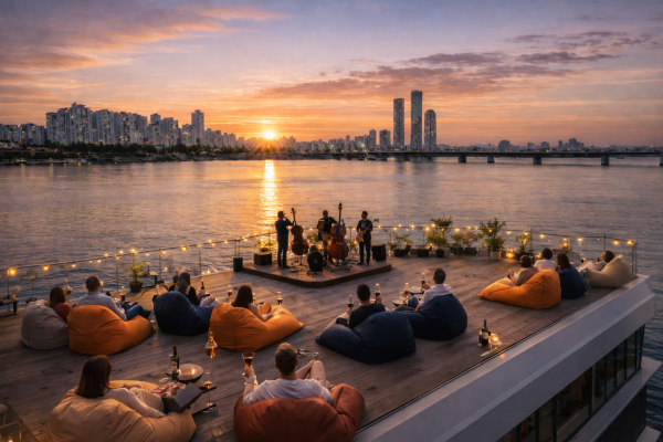이외에도 즐길 거리가 풍성합니다. 마곡과 옥수 선착장 루프탑에서는 노을과 함께 와인, 캠핑 음식을 즐기는 '선셋파티'와 '한강힐링캠프'가 운영됩니다.