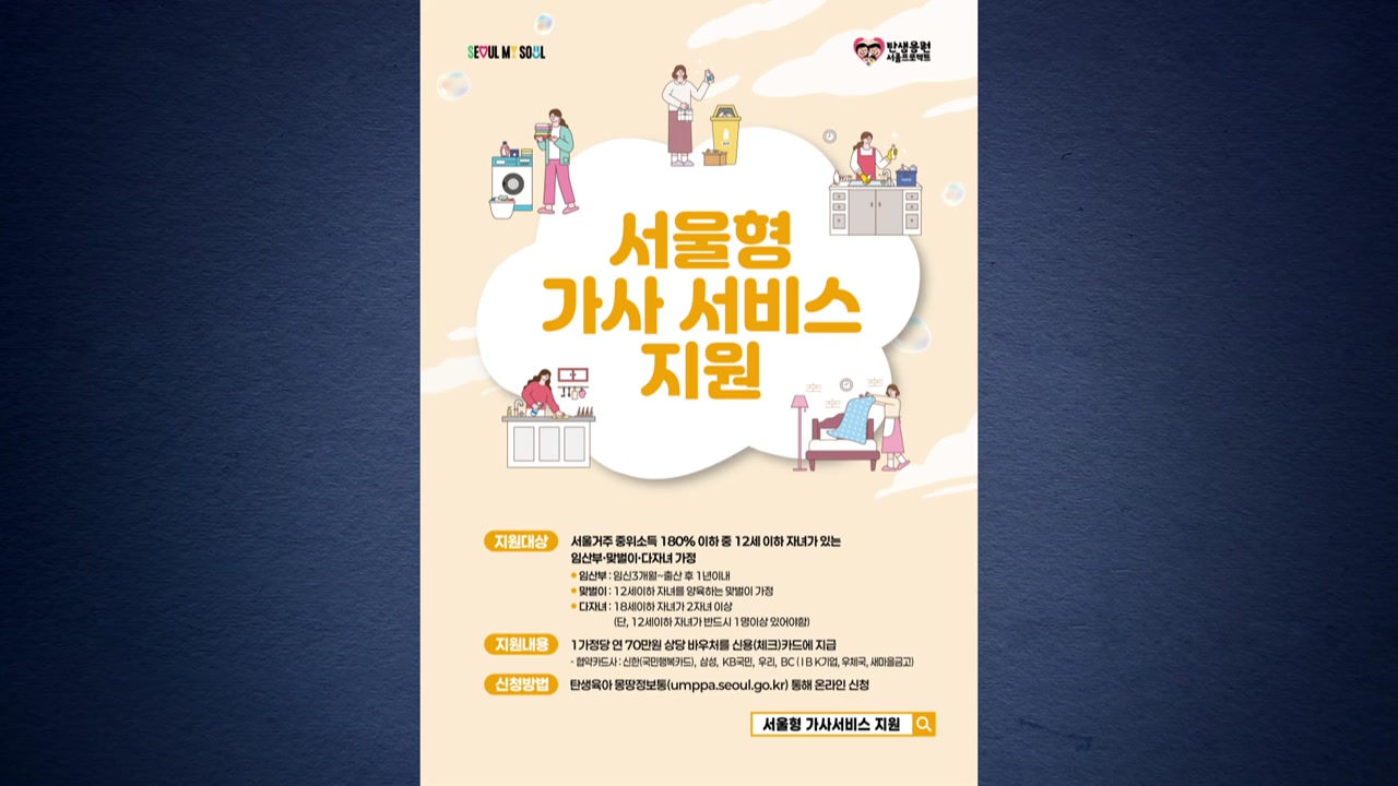 서울에 사는 임산부와 맞벌이, 다자녀 가정이 지원받을 수 있는 '서울형 가사서비스' 접수가 오는 30일부터 이뤄집니다.