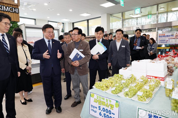 [서울=뉴스핌]윤호중 행정안전부 장관이 25일 오전 광주광역시 북구 소재 장성로컬푸드 첨단직매장을 방문하여 지역 농산물을 둘러보고 있다.[사진=행정안전부] 2026.03.25 photo@newspim.com