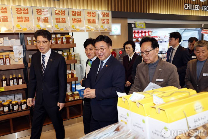 [서울=뉴스핌]윤호중 행정안전부 장관이 25일 오전 광주광역시 북구 소재 장성로컬푸드 첨단직매장을 방문하여 지역 농산물을 둘러보고 있다.[사진=행정안전부] 2026.03.25 photo@newspim.com