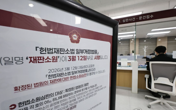 | 25일 서울 종로구 헌법재판소 민원실에 재판소원 관련 안내문이 비치돼 있다. / 사진=연합뉴스 |