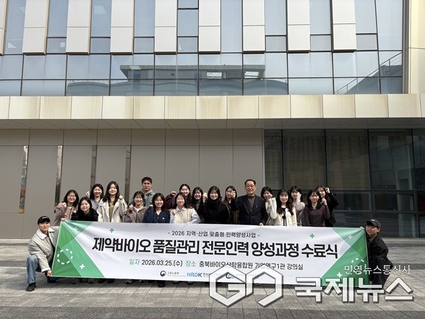 (청주=국제뉴스) 이재기 기자 = 충북도와 충북바이오산학융합원(원장 이장희) 공동훈련센터는 25일 2026년도 지역‧산업 맞춤형 인력양성사업의 첫 결실로 현장 즉시 투입이 가능한 제약바이오 실무 전문가 1차 수료식을 성황리에 개최했다.