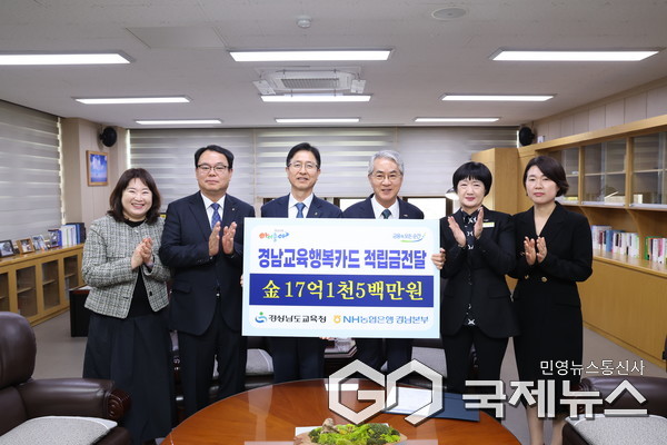 (경남=국제뉴스) 황재윤 기자 = NH농협은행 경남본부(본부장 권동현)가 3월 24일 경도교육청을 찾아 '경남교육행복카드' 사용 포인트 적립금 17억1500만원을 전달했다고 25일 밝혔다.