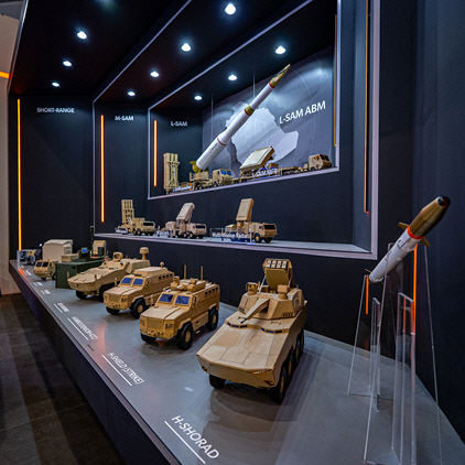 사우디아라비아 리야드에서 열린 WDS 2026 한화 부스에 전시된 한화의 대공방어체계 라인업. /한화시스템 |