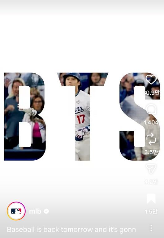 [OSEN=길준영 기자] 메이저리그가 샌프란시스코 자이언츠와 뉴욕 양키스의 시즌 개막전을 앞두고 K-POP 스타 방탄소년단(BTS)의 신곡을 사용한 홍보 영상을 공개했다.