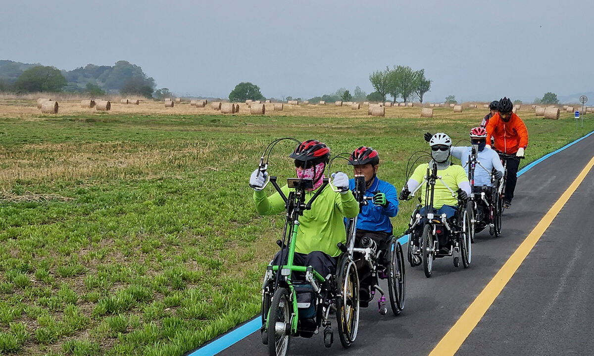 전북 지역 척수장애인 단체 회원들이 춘천부터 인천에 이르는 한강 자전거도로를 휠체어 사이클로 달리고 있다. 사랑의열매 제공 |