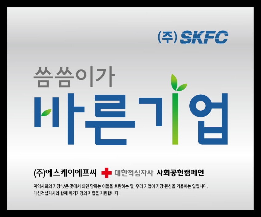 대한적십자사 서울특별시지사(회장 권영규)는 서울 강남구에 위치한 ㈜에스케이에프씨(대표 정홍균)가 '씀씀이가 바른기업' 캠페인에 동참했다고 밝혔다.