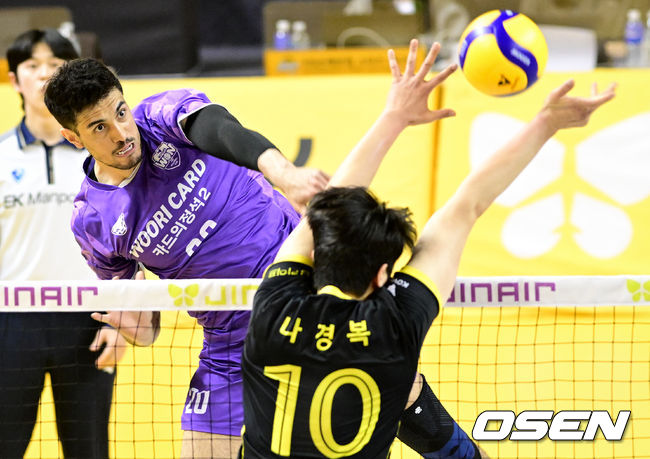 [OSEN=의정부, 조은정 기자]25일 의정부 경민대학교체육관에서 V리그 남자부 준POKB손해보험과우리카드의 경기가 열렸다.