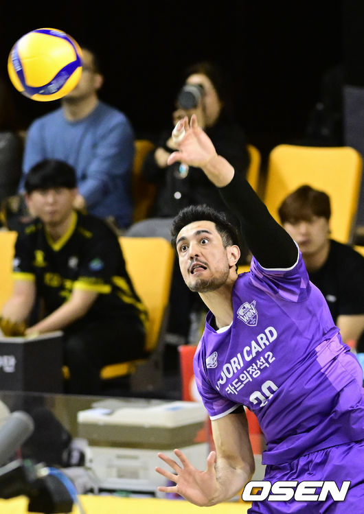 [OSEN=의정부, 조은정 기자]25일 의정부 경민대학교체육관에서 V리그 남자부 준POKB손해보험과우리카드의 경기가 열렸다.