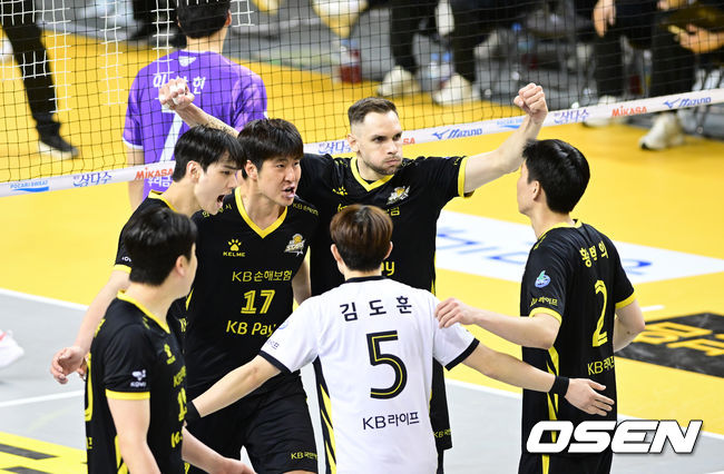 1세트 KB손해보험이 득점에 기뻐하고 있다. 2026.03.25 /cej@osen.co.kr