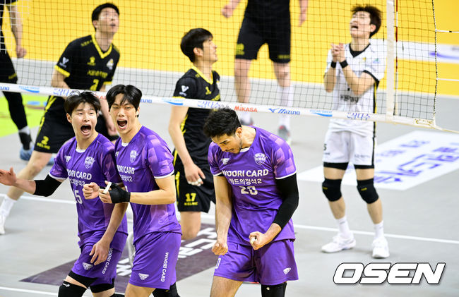 [OSEN=의정부, 조은정 기자]25일 의정부 경민대학교체육관에서 V리그 남자부 준POKB손해보험과우리카드의 경기가 열렸다.