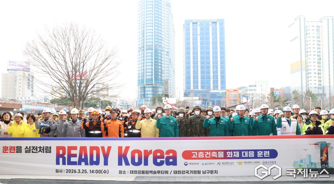 (울산=국제뉴스) 주영곤 기자 = 울산시는 25일 오후 2시 태화강풍림엑슬루타워(남구 봉월로 167) 일원에서 '2026년 레디 코리아(READY Korea) 훈련'을 실시했다고 밝혔다.
